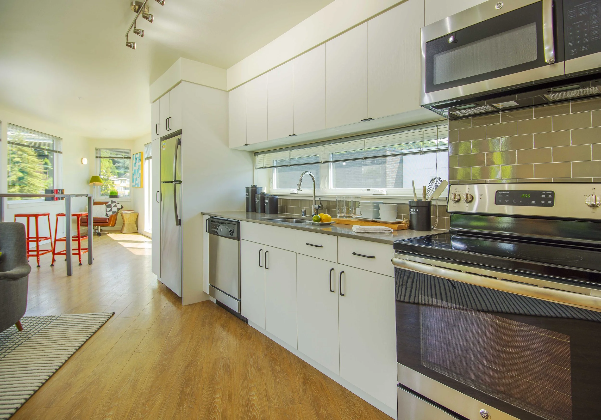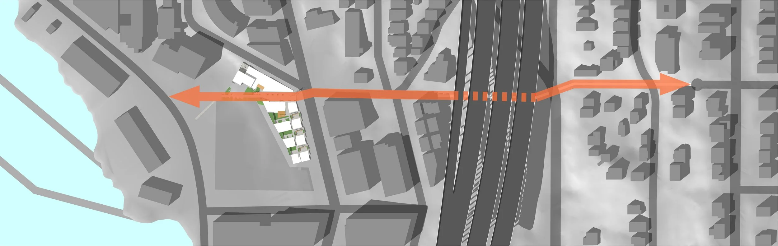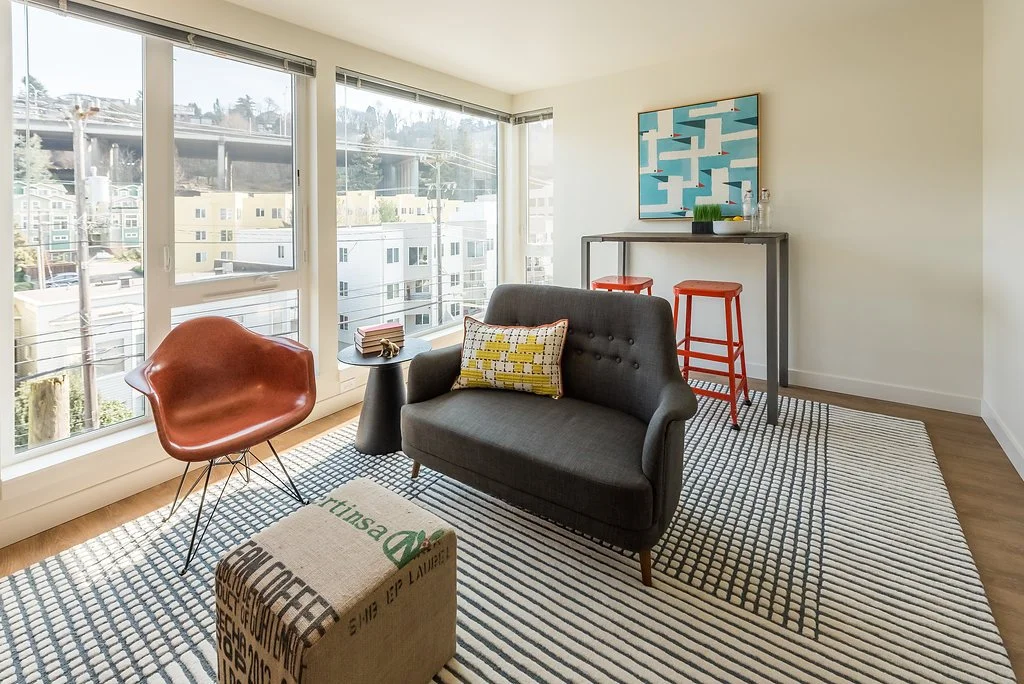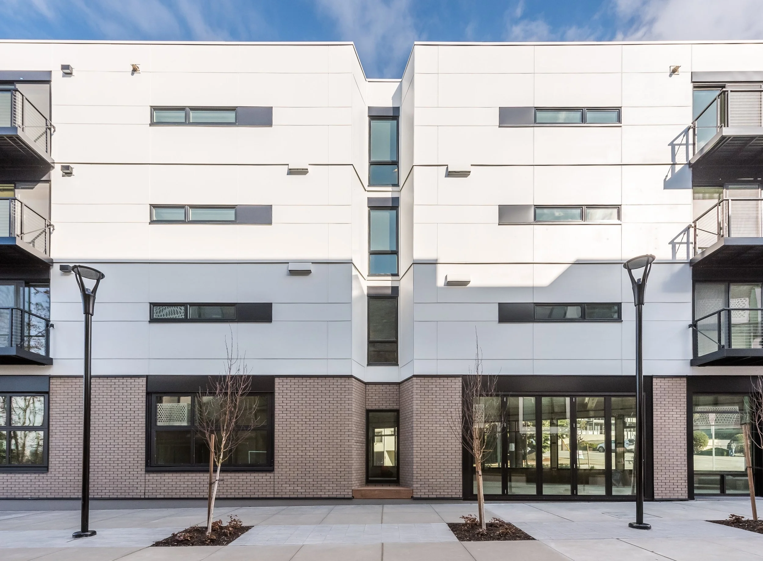 East Howe Steps is a four-story mixed-use building with two “towers” organized around a central public plaza and semi-public courtyards. The heart of the project is the public plaza—aligned with the Howe Street Steps, the longest urban staircase in Seattle and a popular pedestrian route. At street level, small-scale shops and restaurants activate the plaza and street edges. Three interior courtyards serve as open-air rooms for apartment residents, providing daylight, natural ventilation and social spaces separated from the busy street frontage.