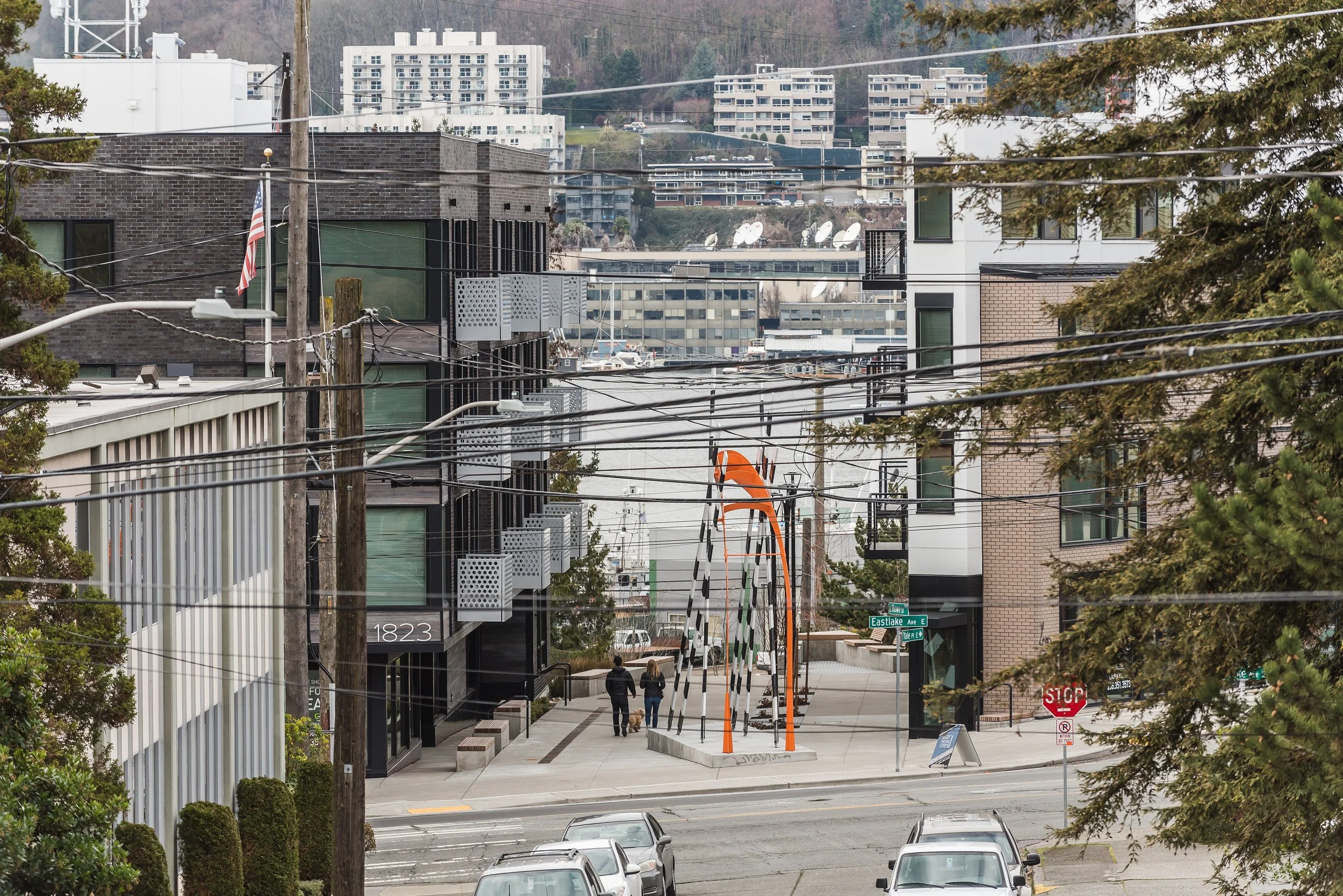 The public plaza serves as public benefit for a below grade street vacation. Parking extends beneath the vacated street, connecting the towers below-grade. In recommending approval of the street vacation, the City noted, “It is rare to find a project with such a minor impact being able to provide a public benefit [with]…such a positive impact on the surrounding community...The size and impacts of the vacation are modest, but the resulting project and the public benefits provided will implement a long-standing vision for the site.”