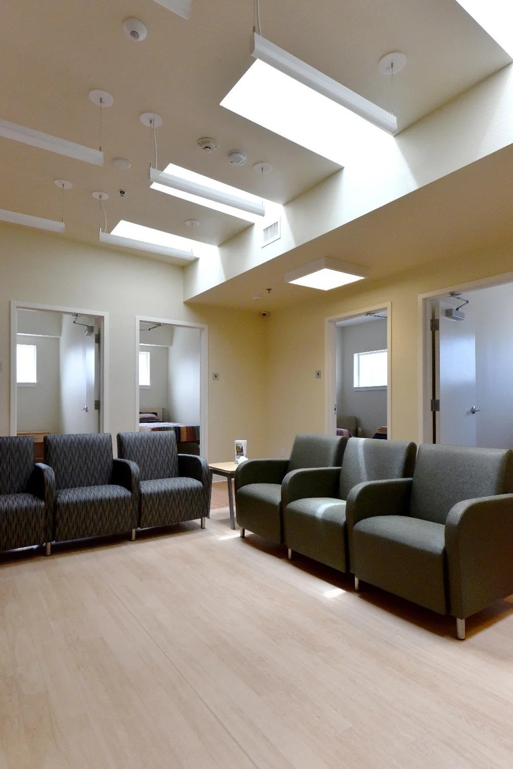 Lynnwood Detox is a conversion of a vacant 1993 commercial space into a 16-bed residential detox facility. The design worked within the constraints of the existing structure to add daylight and create an inviting, observable environment for clients and staff in alignment with the client’s clinical model.
